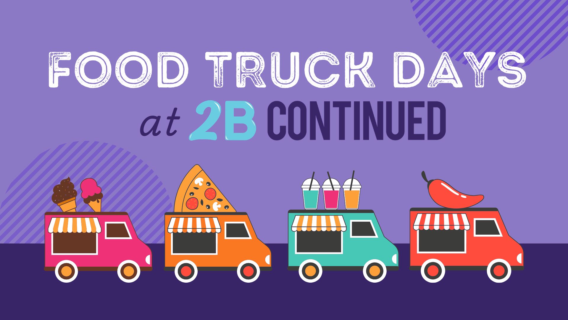 Join us this summer for Food Truck Days at 2B CONTINUED in Glencoe. These are come and go events between 11:00 AM and 1:00 PM, so feel free to stop by for lunch, connect with others in the community, and enjoy a variety of local food truck options. Food and beverages will be available for purchase from each truck.