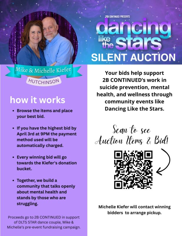 Proceeds go to 2B CONTINUED in support of DLTS STAR dance couple Mike & Michelle Kiefer pre-event fundraising campaign.