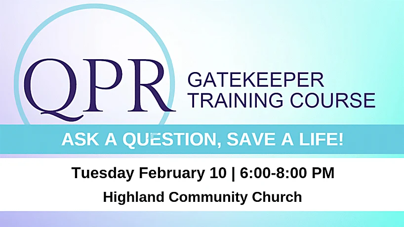 To register, CLICK HERE. Ask a Question, Save a Life! February 10, 2026 | 6:00-8:00PMHighland Community Church13800 US Highway 12, Cokato, MN QPR stands for Question, Persuade and Refer — the three simple steps anyone can learn to help save a life from suicide. Just as people trained in CPR and the Heimlich Maneuver help […]